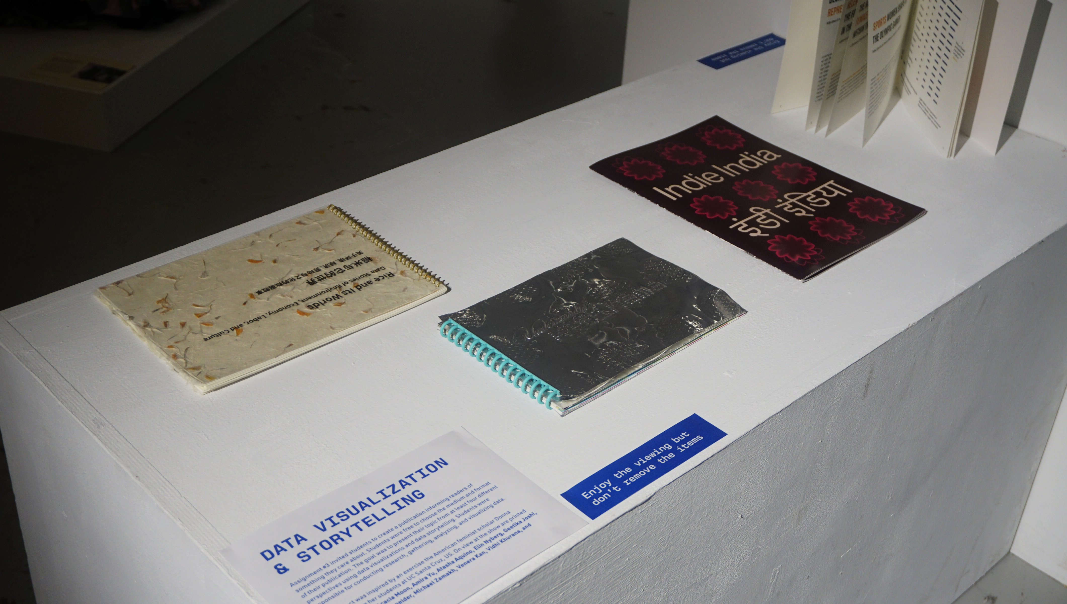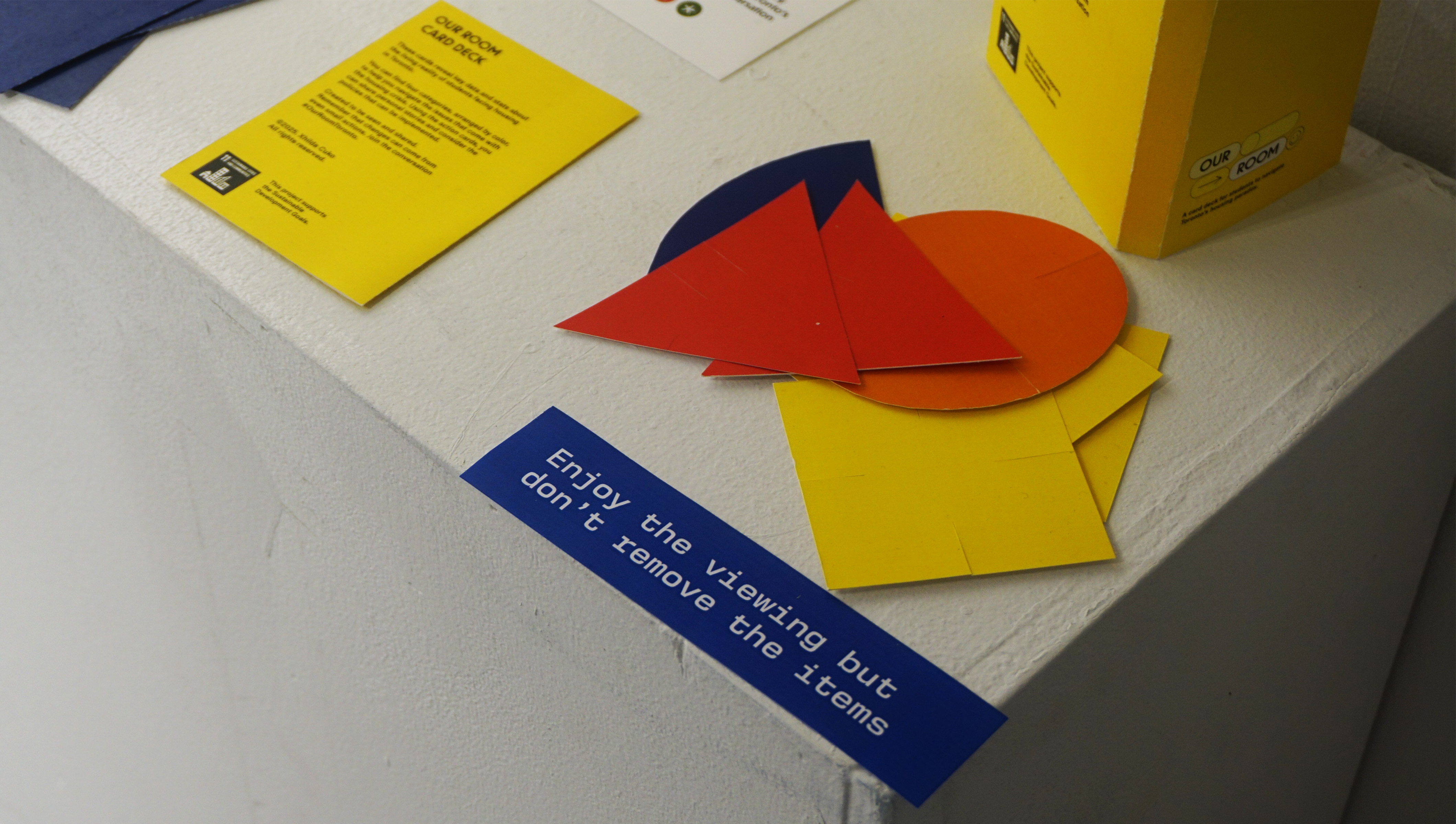 Signs encouraging the viewer to interact with the work.